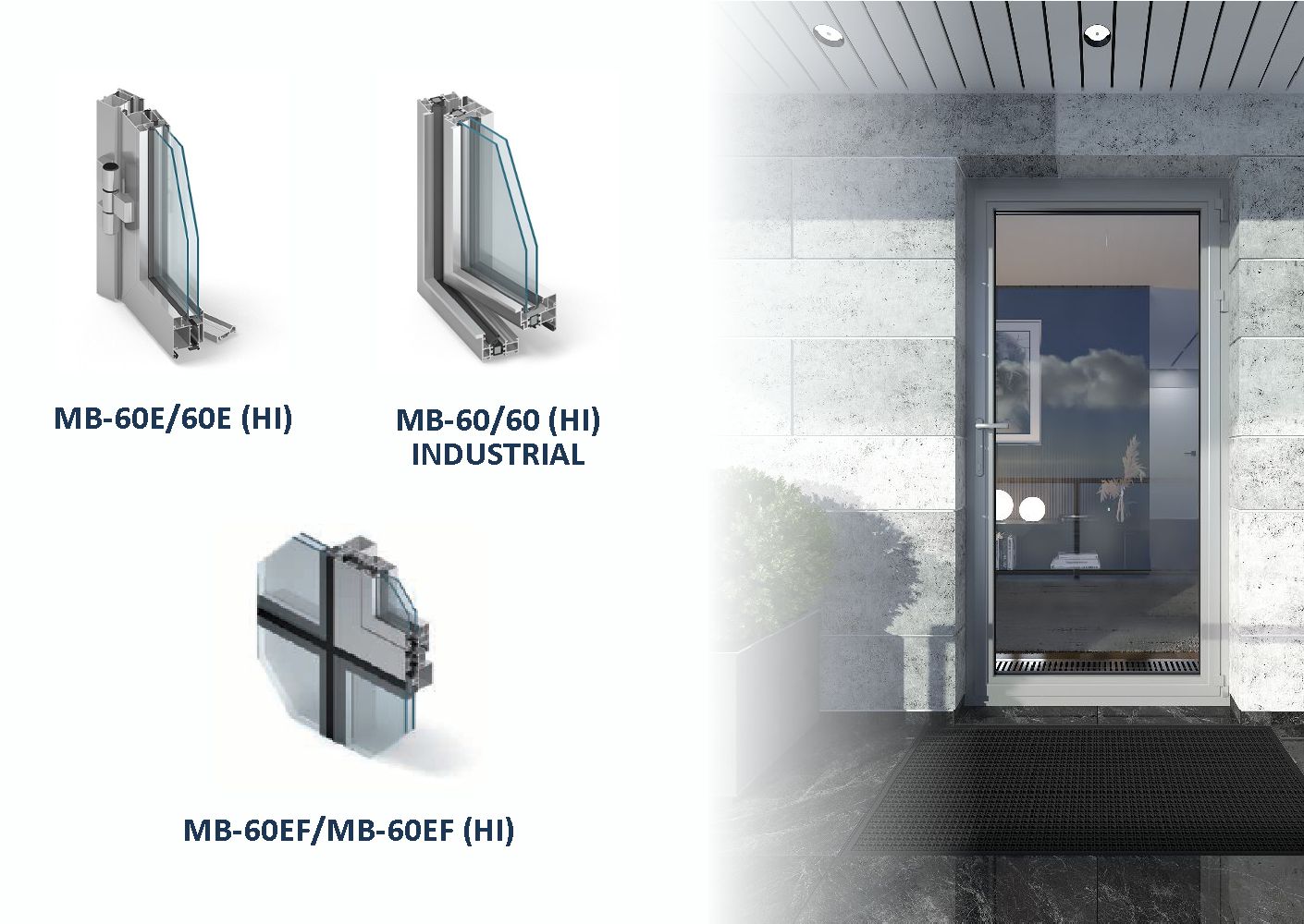 The MB-60 is a stable, universal and complete window and door system for any application requiring enhanced thermal performance that reflect different needs of the various market segments. Its wide selection of compatible components enables to construct various elements from basic thermally insulated windows and doors to pivot and concealed sash windows, industrial type windows with the steel like lookout and security doors. Majority of system varieties are available in both standard and HI version with increased thermal insulation properties.