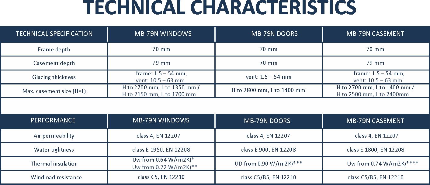 The MB-79N is a state-of-the art and economical addition to the Aluprof window & door systems. It has been designed to outperform typical thermal insulation requirements. The MB-79N series can be used to fabricate fixed, side-hung, hopper, tilt-and-turn, and hopper-and-slide windows, as well as single and double exterior doors, and storefront solutions complete with doors.