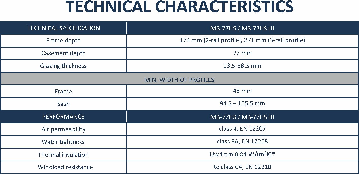 • the MB-77HS features a high level of compatibility with the ALUPROF MB-86 allowing the door to can be aesthetically combined